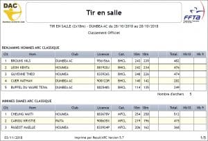 Coucou les amis, voici les Résultats du TIR EN SALLE du 28/10/2018